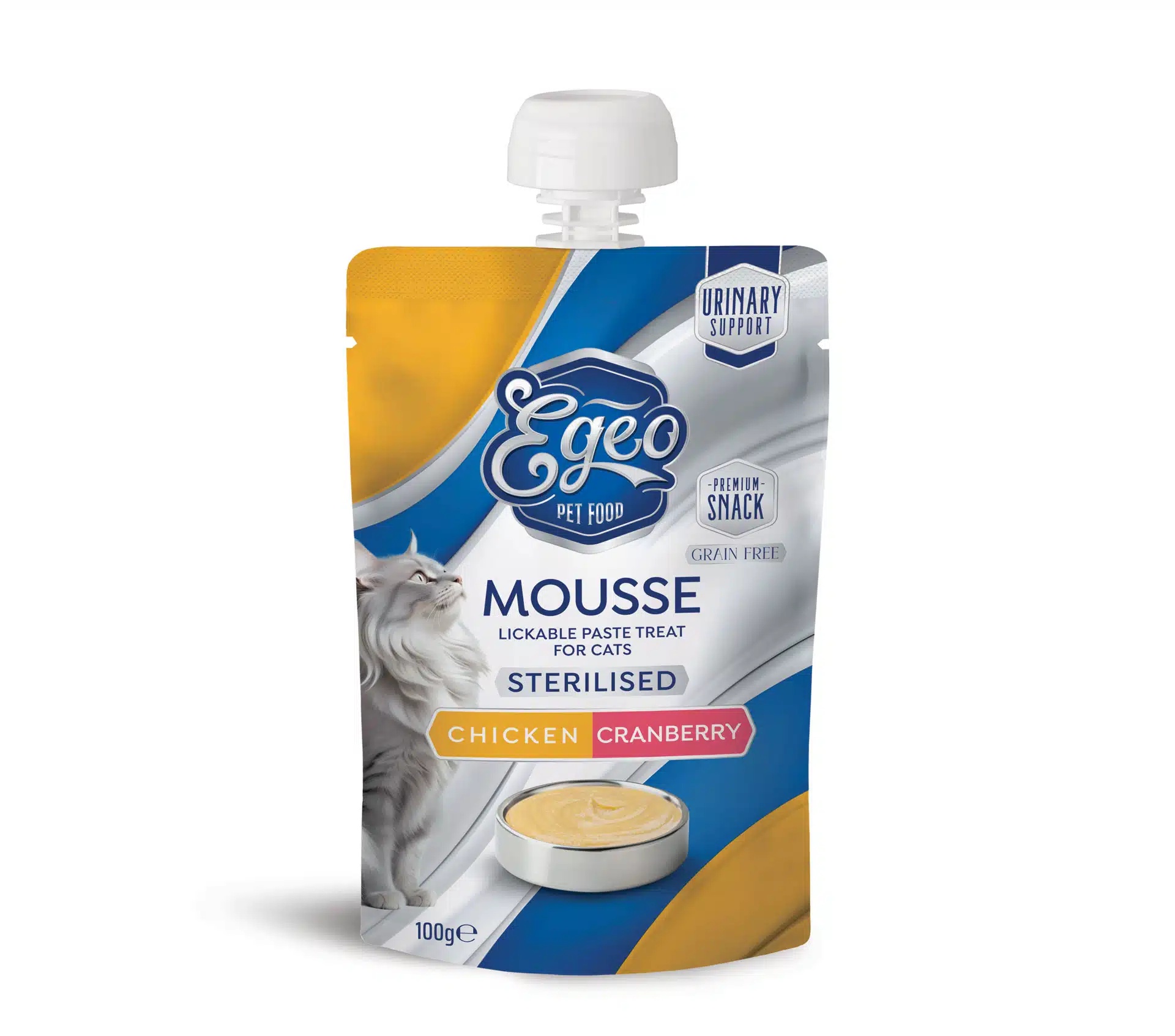 Απολαυστικό grain free σνακ με κοτόπουλο και κρανμπερι σε μορφή μους με αφράτη και απαλή υφή χωρίς κομμάτια. Ιδανικό για στειρωμένες γάτες. Χαρίζει καλή ενυδάτωση, ενισχύει το ουροποιητικό και μπορεί να αναμιχθεί με ξηρά τροφή για επιπλέον γεύση.
