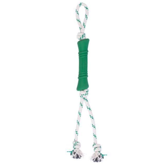GREEN SHEEP Φυσικό Λαστιχένιο Παιχνίδι Κόκκαλο με Σχοινί – Πράσινο