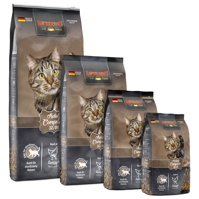 Πλούσιο σε νόστιμο πουλερικό, το LEONARDO Adult Complete 32/16 είναι η ιδανική επιλογή για όσους αναζητούν μια οικονομική, ισορροπημένη και ταυτόχρονα ιδιαίτερα γευστική συνταγή· χάρη στη μειωμένη ενεργειακή του αξία, αυτή η ποικιλία υποστηρίζει επίσης μια κομψή σιλουέτα – τέλεια για στειρωμένες γάτες ή για γατάκια που ζουν πιο ήρεμα μέσα στο σπίτι. Έτσι μπορείς κάθε μέρα να προσφέρεις στη γάτα σου με απόλυτη σιγουριά ένα γευστικό γεύμα που της παρέχει όλα όσα χρειάζεται και ταυτόχρονα βοηθά στη διατήρηση της καλής της φόρμας.