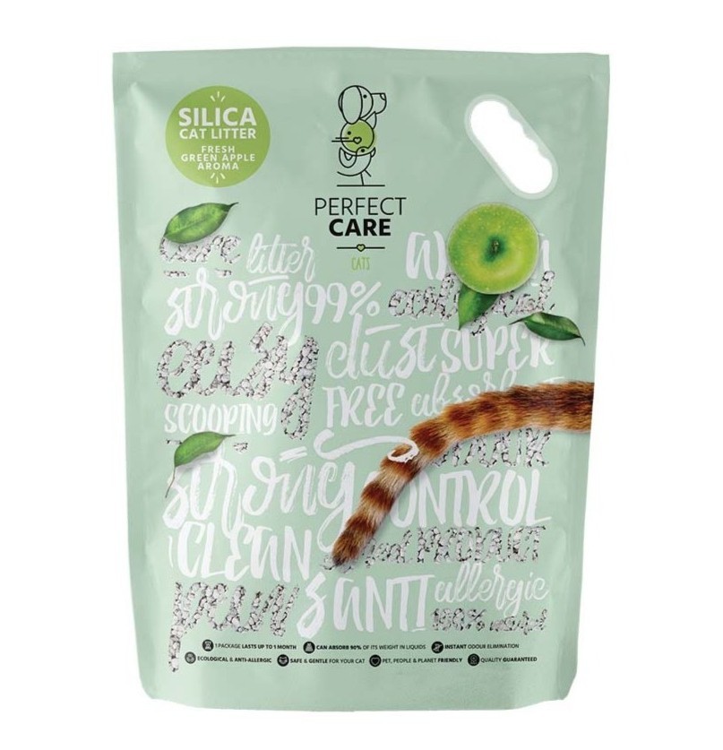 PERFECT CARE Cat Silica Litter Green Apple Aroma Αμμος Με Φυσικούς Κρυστάλλους Σιλικόνης Με Άρωμα Πράσινο Μήλο 5.8lt