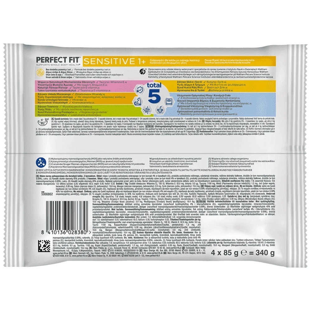Κάθε νόστιμη συνταγή Perfect Fit περιέχει τη μοναδική φόρμουλα “”Total 5″” που υποστηρίζει την ολιστική σωματική υγεία της γάτας σας και προσφέρει επιπρόσθετα υγιεινά οφέλη, ειδικά σχεδιασμένα για την ηλικία και τον τρόπο ζωής της.