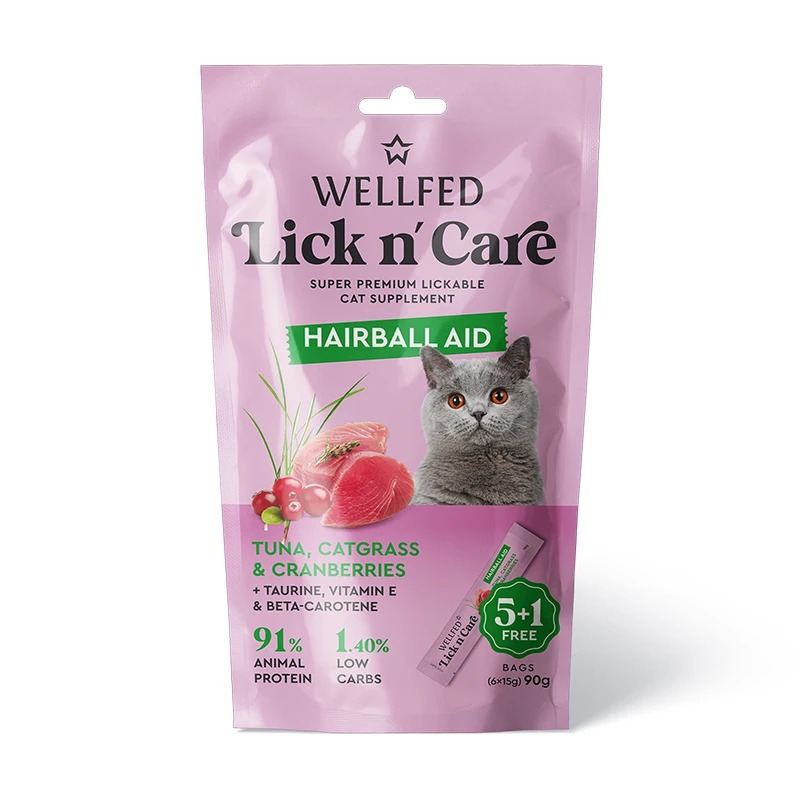 Wellfed Lick N’ Care Hairball Aid 5+1 – Η έξυπνη επιλογή για καθημερινή φροντίδα & πρόληψη τριχόμπαλων!